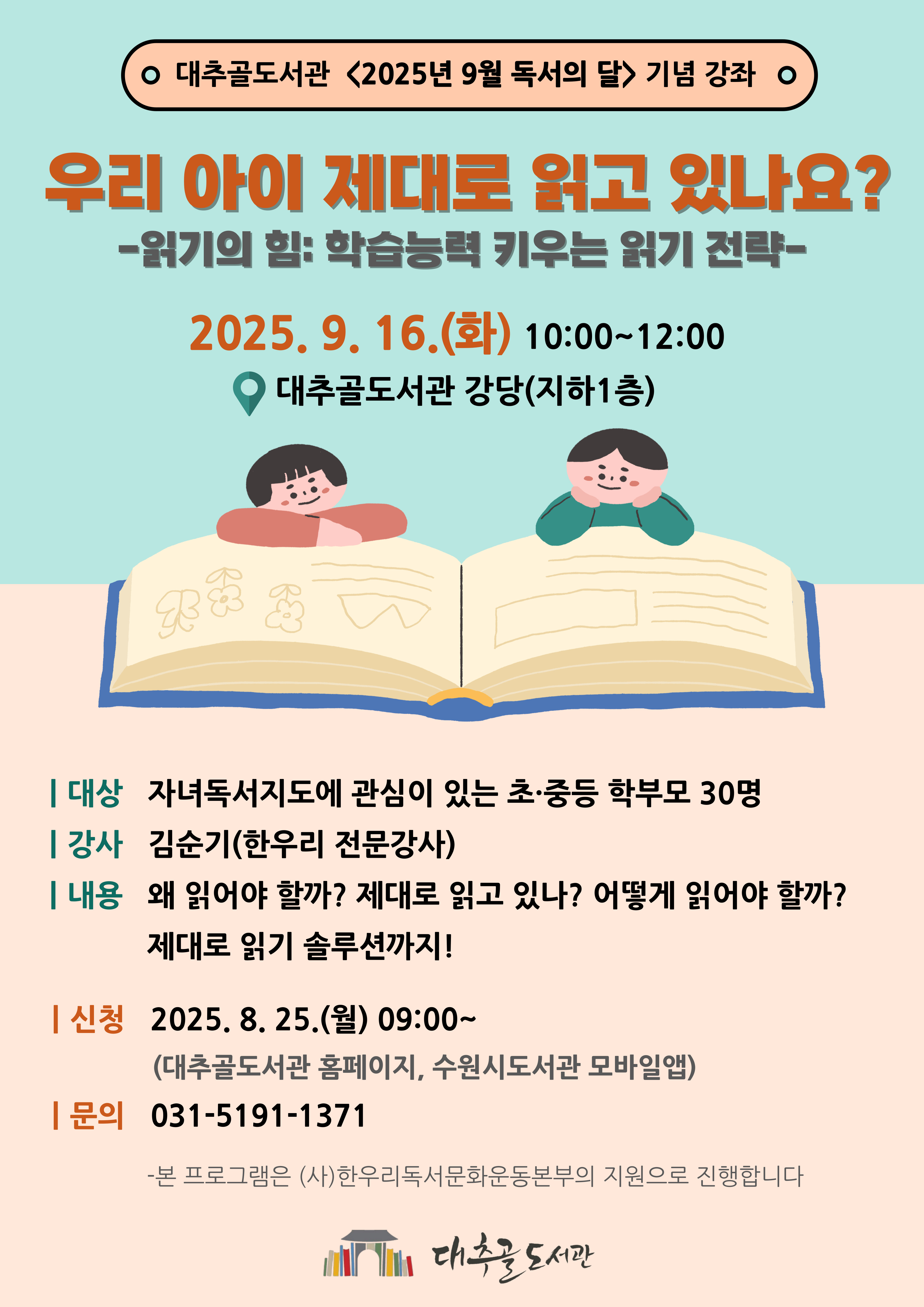대추골도서관 2025년 9월「독서의 달」프로그램 홍보