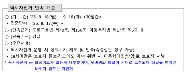 제동장치 없는 픽시자전거 단속 홍보