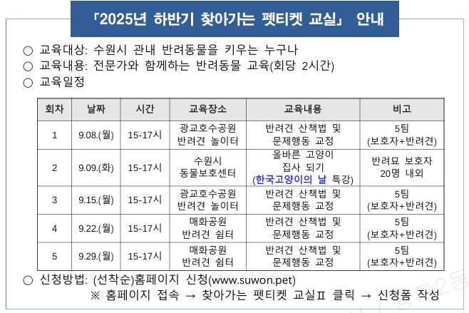 「2025년 하반기 찾아가는 펫티켓 교실」홍보