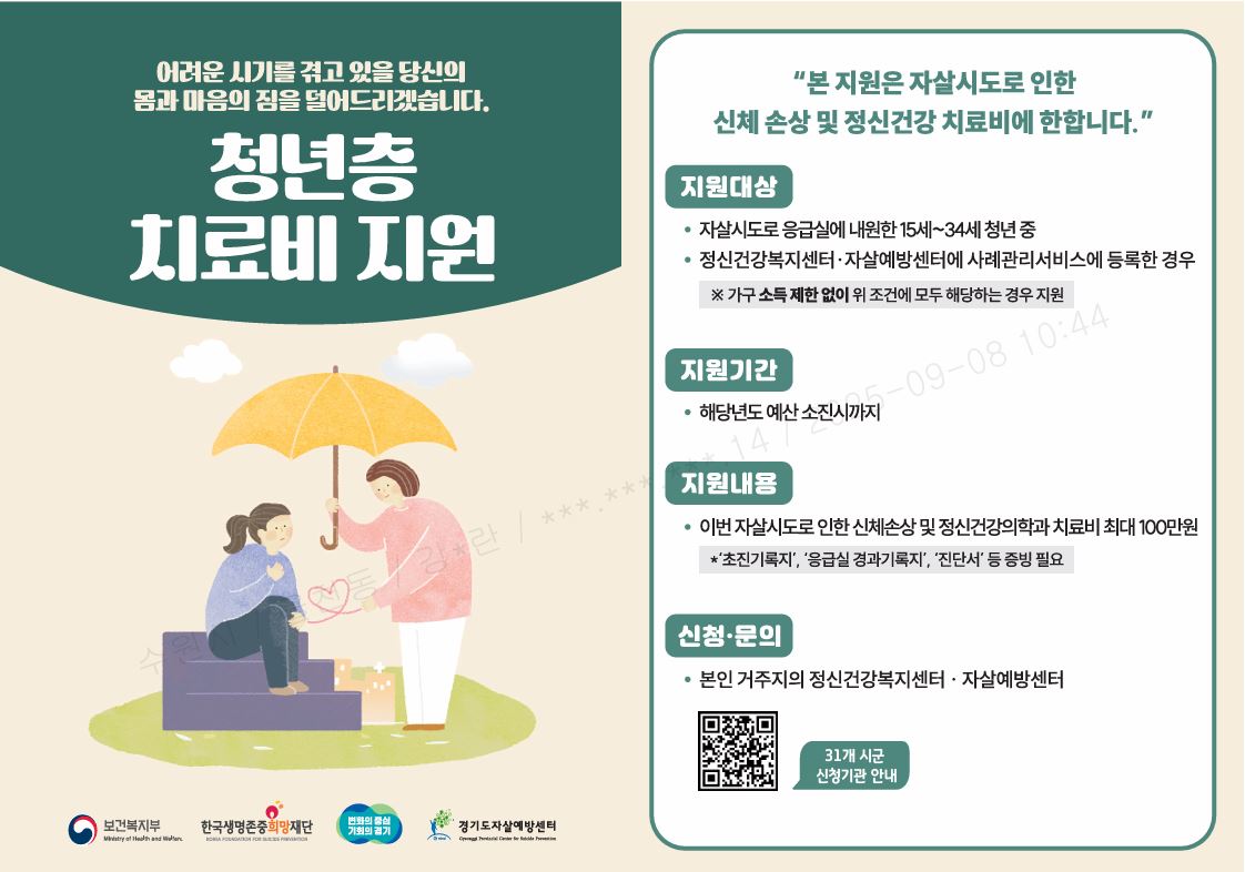 청년층 자살시도자 치료비 지원 등 자살위기·정신건강 치료비 지원사업 안내