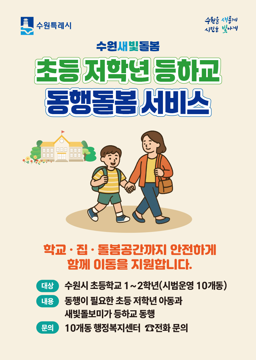 대상: 수원시 초등하교 1~2학년(시범운영 10개동) / 장안구 율천동, 정자3동
