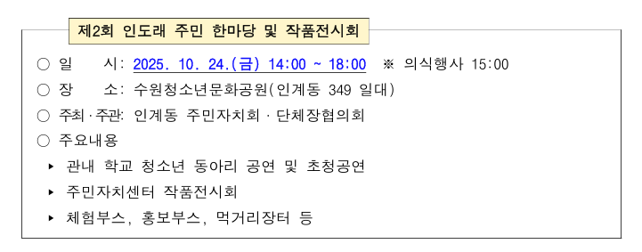 제2회 인도래 주민 한마당 및 작품전시회 안내