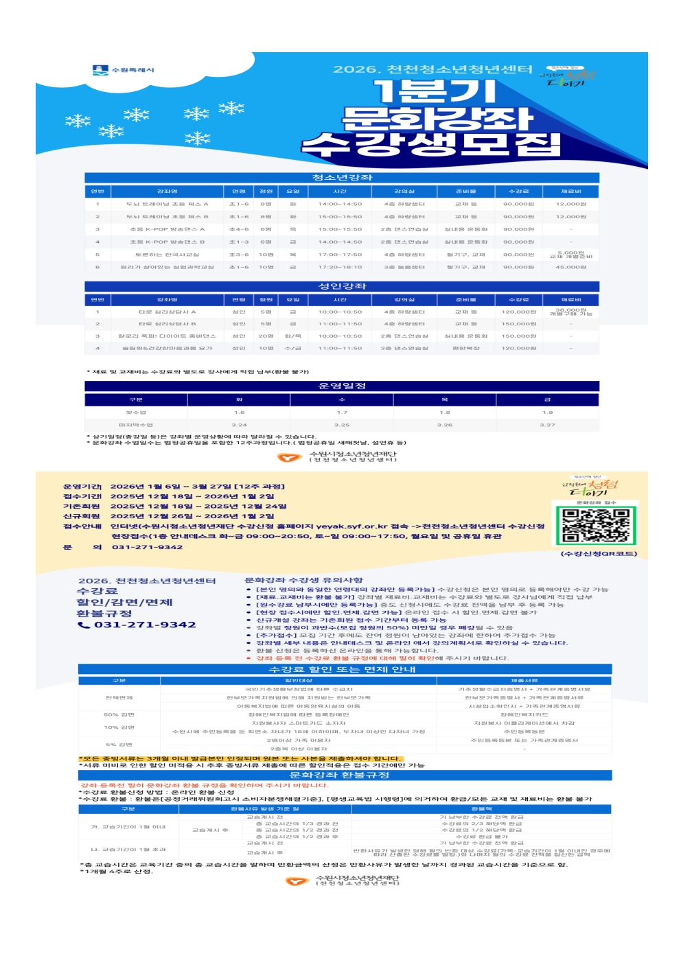 2026년 천천청소년청년센터 문화강좌 1분기(1~3월) 안내