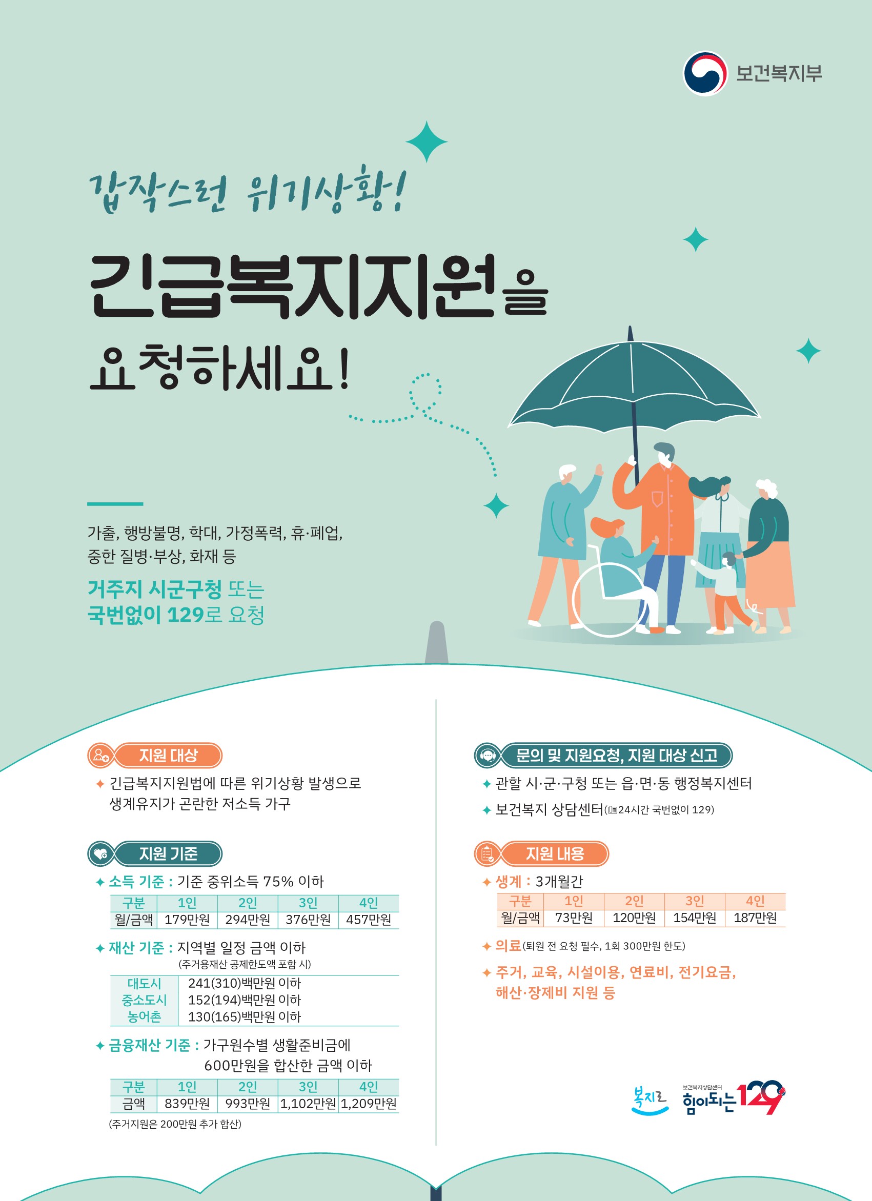 긴급복지지원을 요청하세요