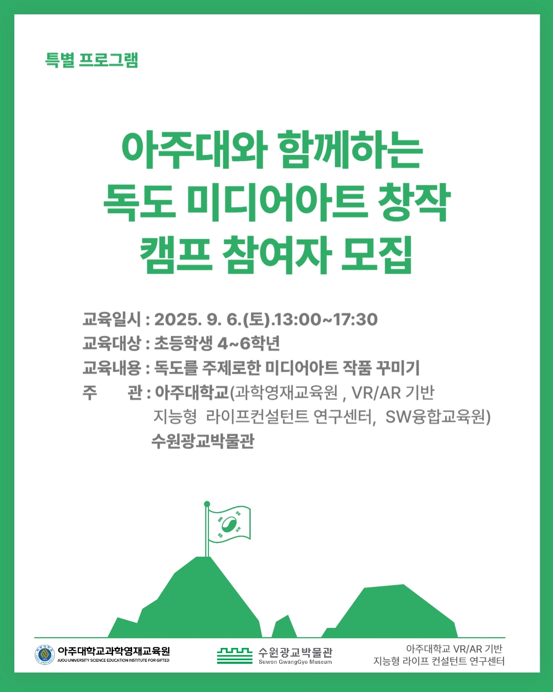 ○ 주최: 수원광교박물관, 아주대학교(과학영재교육원, VR/AR 기반 지능형 라이프