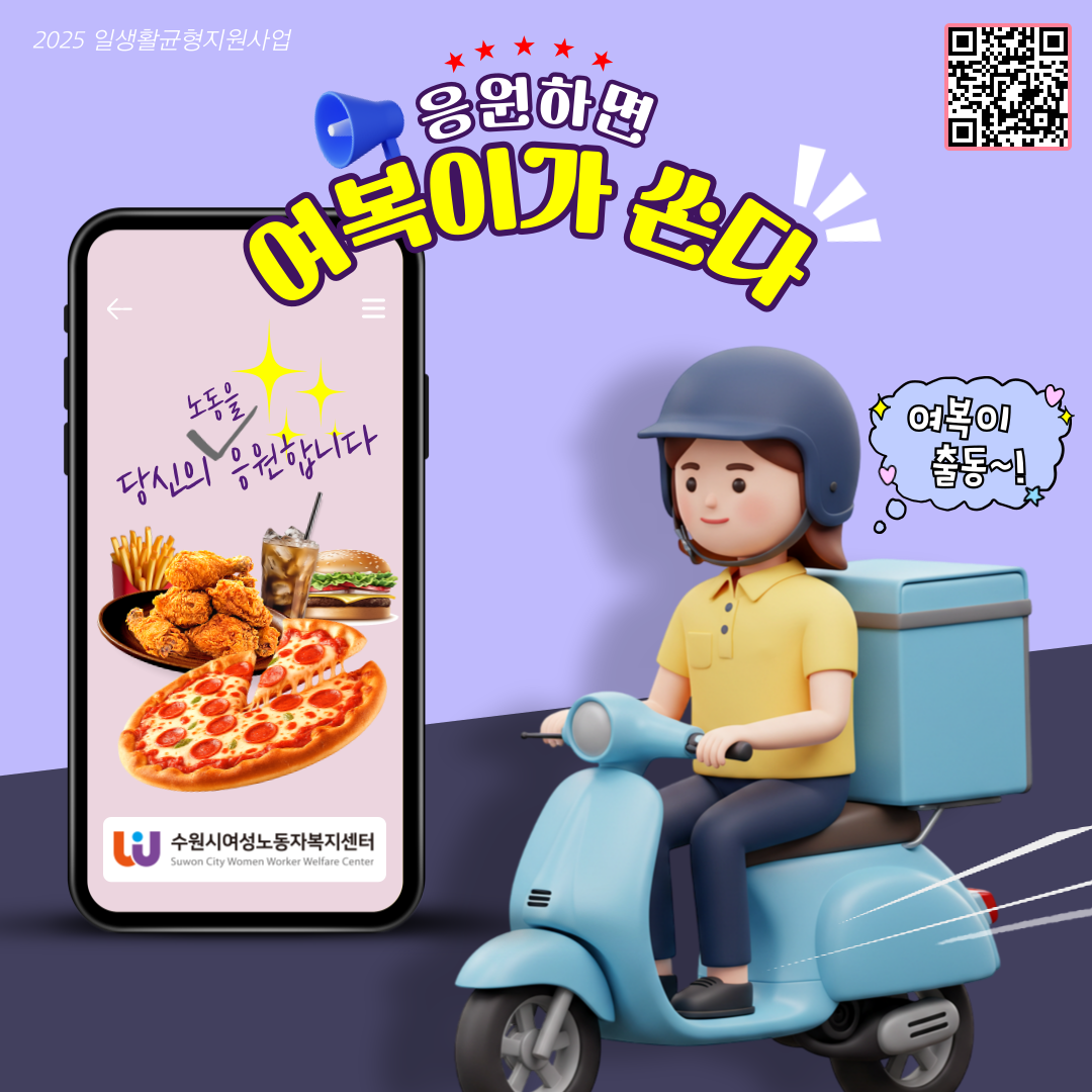 수원시여성노동자복지센터에서는 돌봄, 감정 노동에 종사하시는 분들을 응원하고자 맛있는 간식을 배달해 드리는 이벤트를 진행합니다.