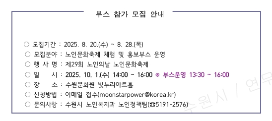 제29회 노인의 날 기념 체험부스 모집 안내