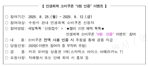 수원시 민생회복 소비쿠폰 0원 인증 이벤트 안내